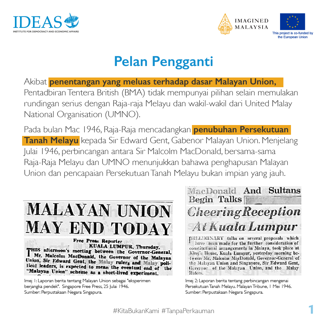 Kegagalan Malayan Union menyebabkan pentadbiran British terpaksa memulakan semula perbincangan tentang cadangan penubuhan Persekutuan Malaya. Namun, bukan semua pihak bersetuju dengan rundingan tersebut. Pihak yang tidak bersetuju ini telah mencadangkan satu alternatif. Siapakah mereka dan apakah alternatif tersebut?