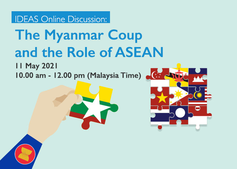 On 11th May 2021, IDEAS conducted an online event titled “IDEAS Online Discussion: The Myanmar Coup and the Role of ASEAN”. Four knowledgeable speakers, namely Eric Paulsen, Lilianne Fan, Moe Thuzar and Khine Win, joined the moderator, Zokhri Idris, as the discussion attempted to understand how the crisis threatens Myanmar’s internal unity and regional centrality. The panel also keen to explore what role can ASEAN plays in bringing all main stakeholders, both inside and outside Myanmar, to the negotiating table.