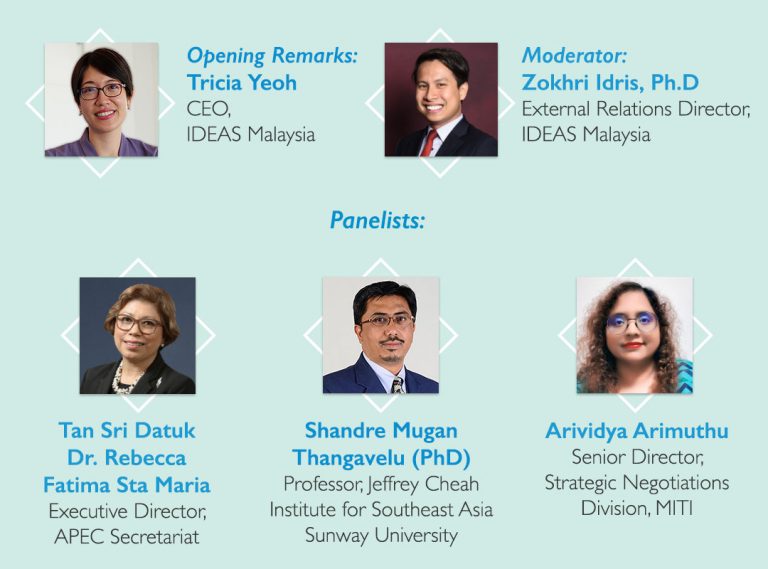 The economic fallout of the ongoing COVID-19 pandemic has been particularly severe for ASEAN, composed as it is of relatively open economies heavily interlinked with global trade networks. ASEAN countries are currently undergoing some of their worst COVID-19 waves, with lockdowns and social restrictions in force in many ASEAN capitals to deal with record daily cases and hospitalization rates. This is expected to have a significant economic drag on the region, with the International Monetary Fund having downgraded its 2021 growth projections for the ASEAN-5 countries (comprised of Malaysia, Thailand, Viet Nam, Indonesia, and the Philippines) by -0.6% to 4.3%.As such, it is more crucial than ever for ASEAN’s policymakers to strategize their post-pandemic recovery, a key factor of which would be by furthering economic integration through trade and investments. Two crucial regional frameworks that could facilitate this include the Regional Comprehensive Economic Partnership (RCEP) as well as the Comprehensive Progressive Trans-Pacific Partnership (CPTPP). Both mega-trade deals, which build upon previously signed bilateral and multilateral free trade agreements between their signatory states, would help anchor ASEAN Centrality through the opening up of domestic and regional markets for further trade and investment integration.Event Panelists: