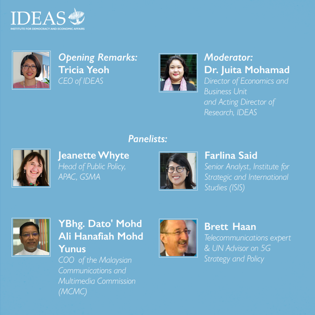 The webinar will provide the platform to explore the benefits and risks of 5G deployment in the Malaysian context. It will explore issues related to 5G and cybersecurity as well as examine measures to mitigate risks of the SWN 5G rollout model. The experts will share best practices of 5G roll-out and discuss ways to ensure the 5G network will be beneficial and inclusive for all levels of society in Malaysia.