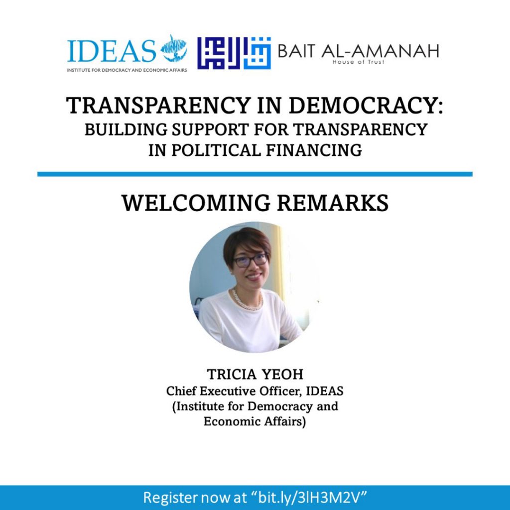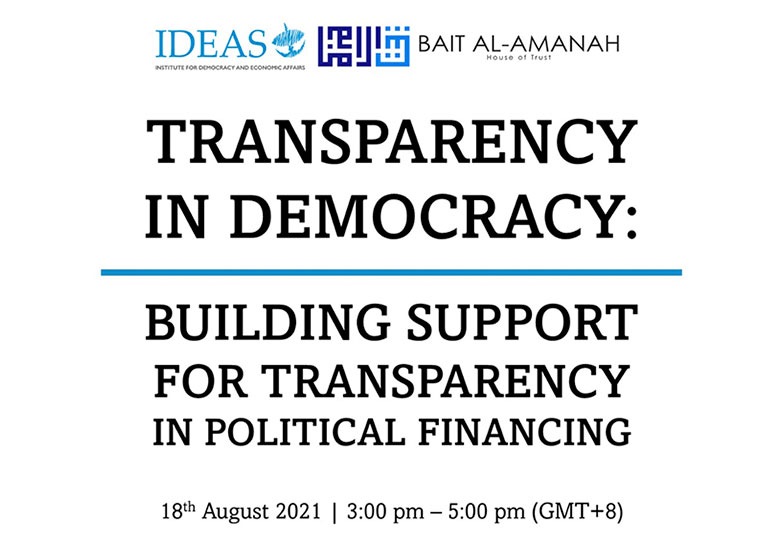 Sebuah webinar mengenai pendanaan politik, kepentingan ketelusan dan kebertanggungjawaban dalam kedua-dua sumber dana dan perbelanjaan.
