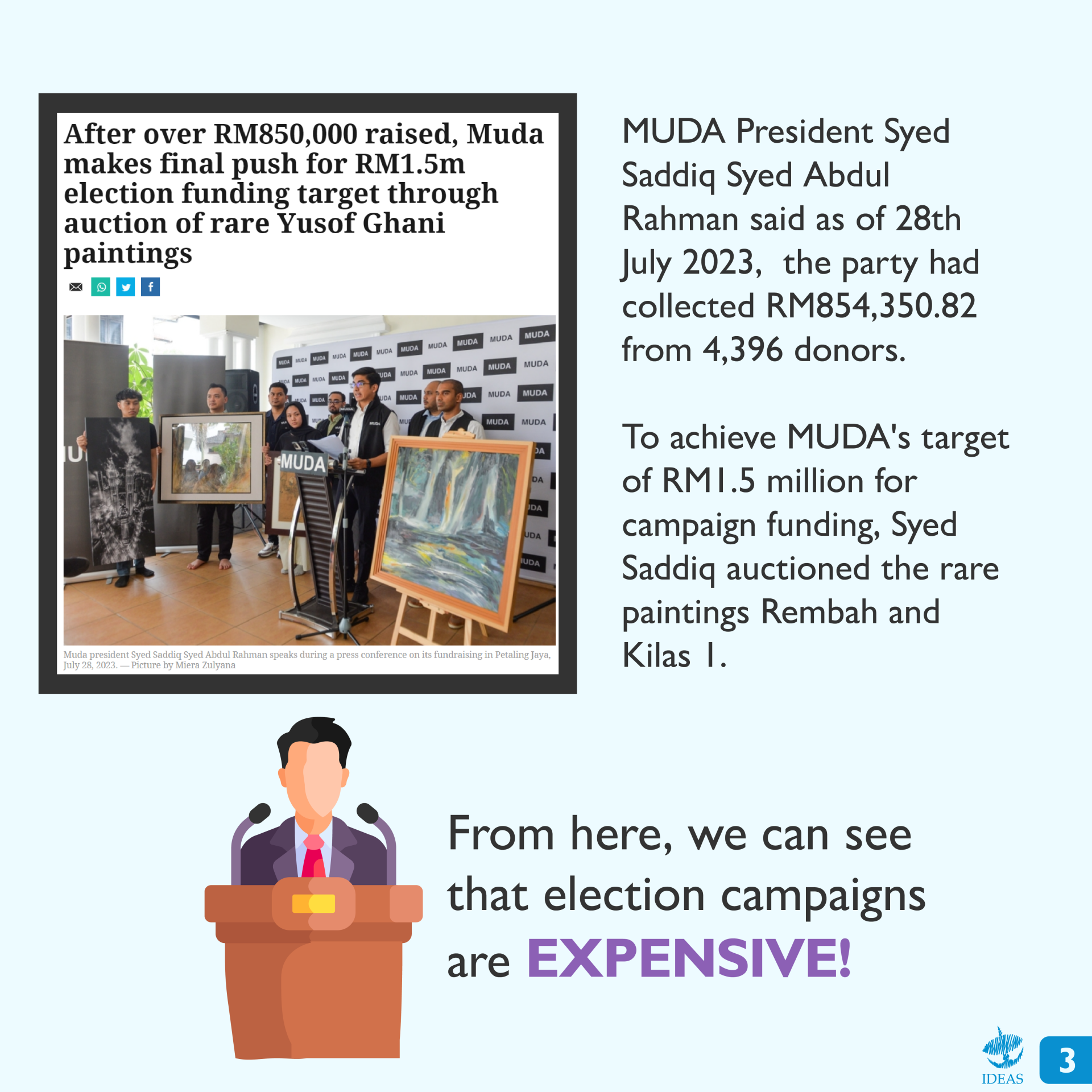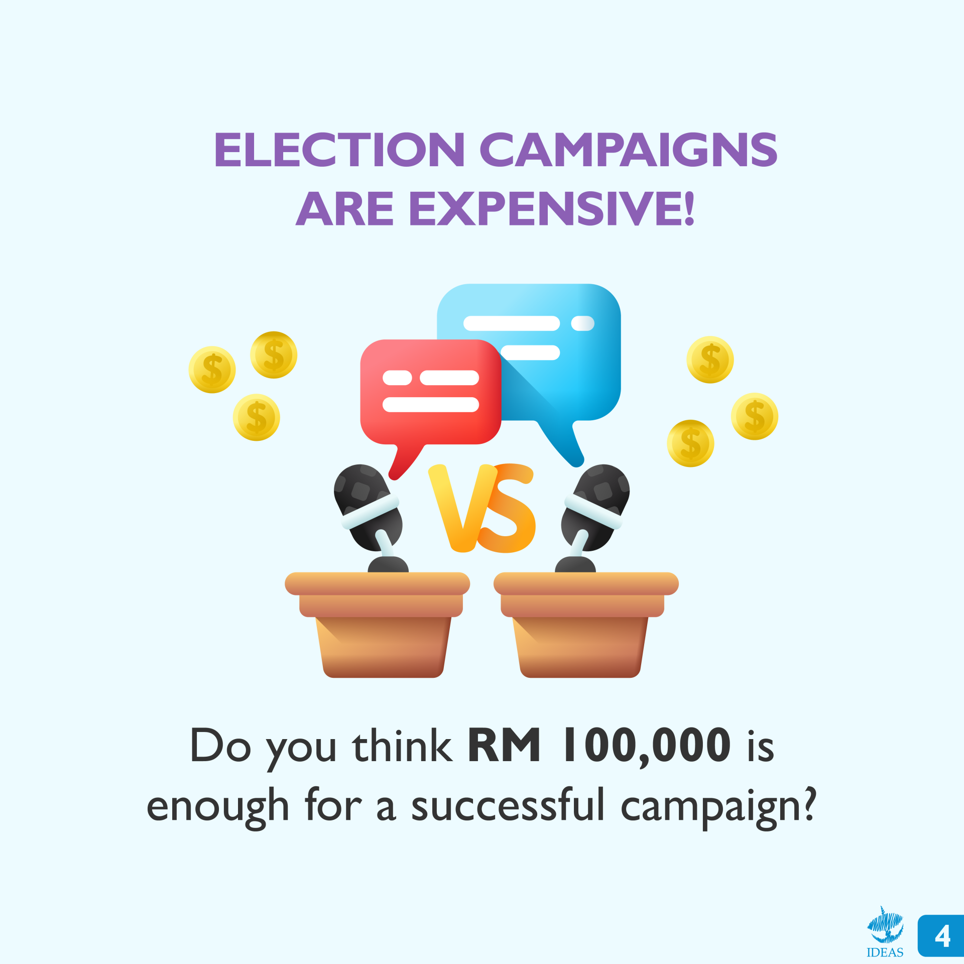 Pernahkah kamu tertanya-tanya tentang jumlah perbelanjaan calon pilihan raya sewaktu musim kempen? Adakah terdapat undang- undang yang menetapkan had bagi perbelanjaan semasa kempen dan adakah calon berbelanja mengikut had yang ditetapkan?