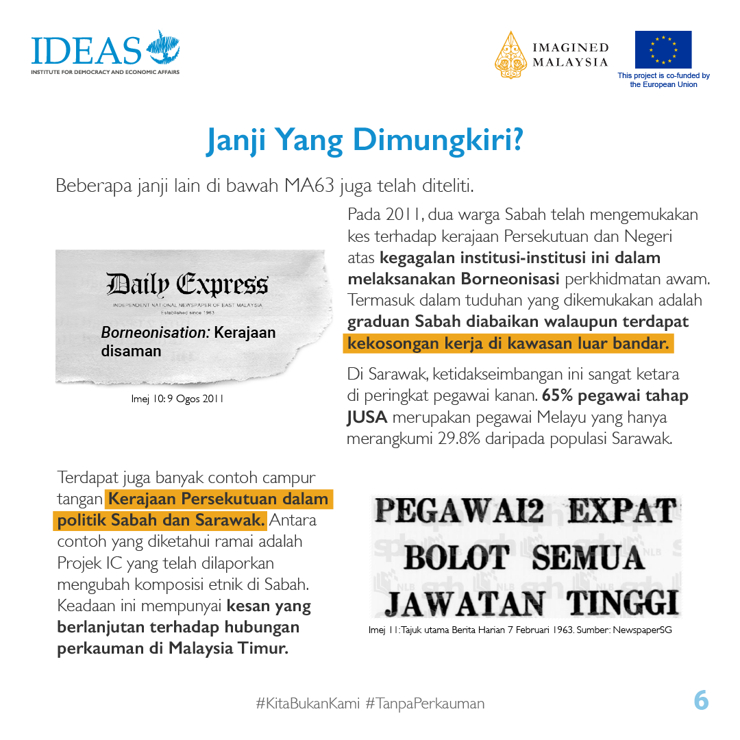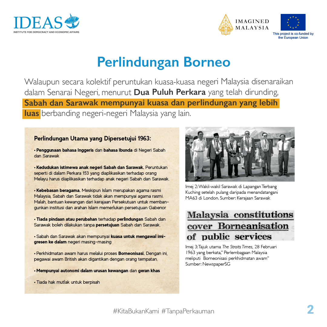 Pada 16 September 1963, Sabah, Sarawak, Singapura dan Malaya telah bergabung dan membentuk negara Malaysia. Apakah ciri-ciri utama Perjanjian Malaysia 1963 (MA63) yang bertujuan melindungi kepentingan negeri-negeri Borneo? Apakah rungutan sejarah yang timbul daripada MA63?
