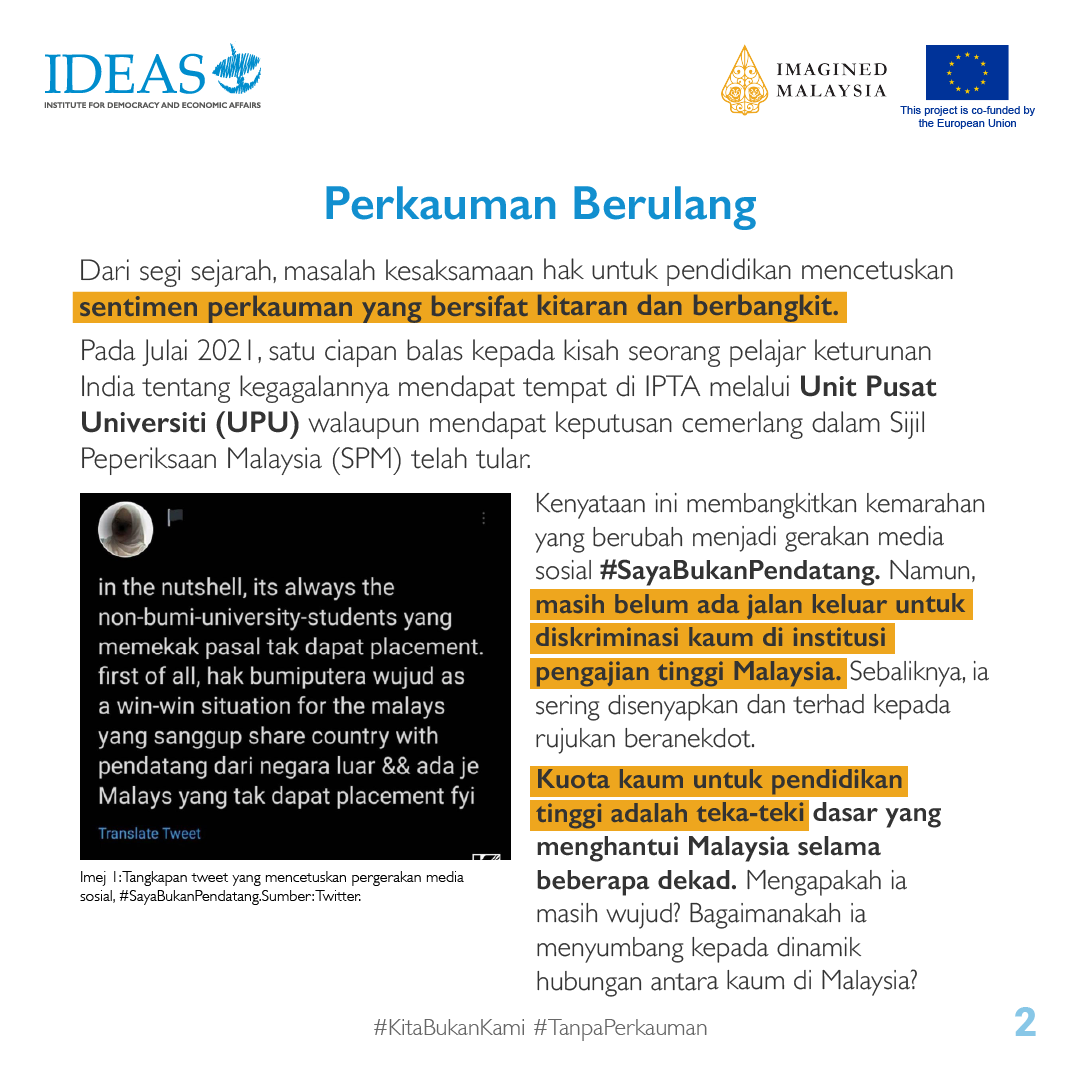 Kami bersama @imaginedmalaysia sedang bekerjasama untuk Projek #TanpaPerkauman: Sejarah Antirasis Malaysia, sebuah kempen yang bertujuan untuk memperkukuh kualiti wacana sejarah Malaysia supaya lebih inklusif, tepat dan majmuk. Projek ini dibiayai bersama oleh @euinmalaysia.