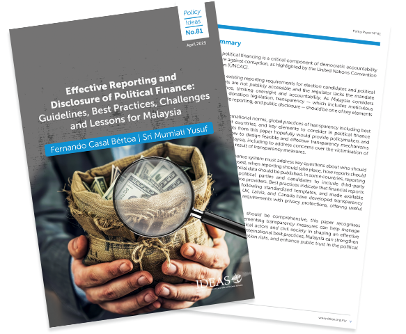 • Policy Ideas No. 81 – Effective Reporting and Disclosure of Political Finance: Guidelines, Best Practices, Challenges and Lessons for Malaysia