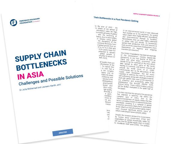 Supply Chain Bottlenecks in Asia: Challenges and Possible Solutions - discusses the development of the supply chain post-pandemic, opportunities, and challenges faced by Malaysia and countries in the region in relation to the disruptions in the global supply and value chains.