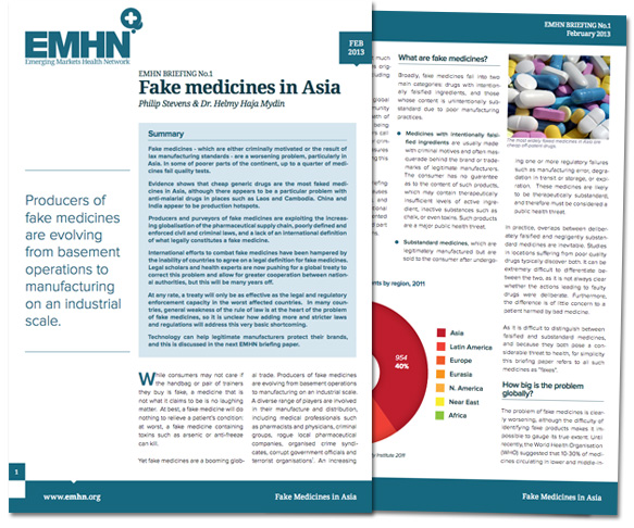 In many countries, general weakness of the rule of law is at the heart of the problem of fake medicines, so it is unclear how adding more and stricter laws and regulations will address this very basic shortcoming. Technology can help legitimate manufacturers protect their brands, and this is discussed in the next EMHN briefing paper.