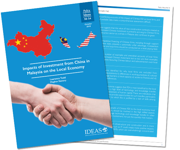 In this paper, IDEAS assess the impact of Chinese investment on the Malaysian economy, by focussing on the opportunities created by these projects for local firms, and local SMEs in particular, placing our specific focus on major infrastructure projects involving Chinese State-Linked companies.