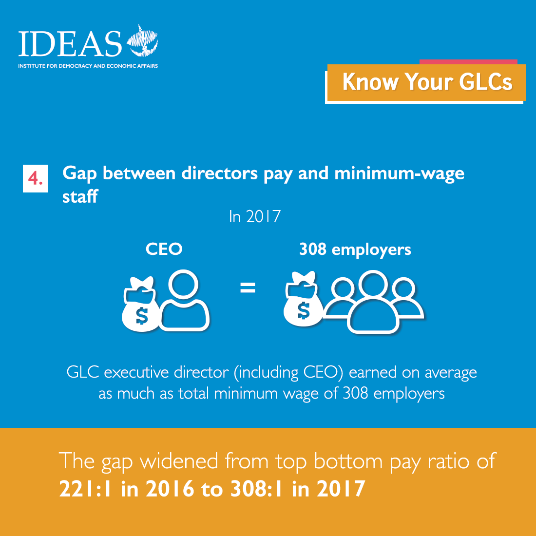On the other hand, CEO remuneration of GLCs are relatively lower than that of other CEOs in the top 100 firms.